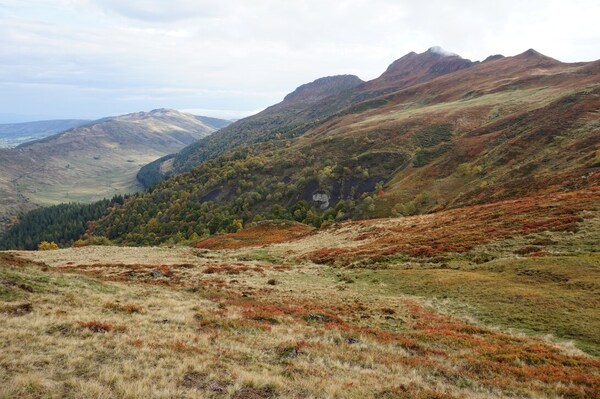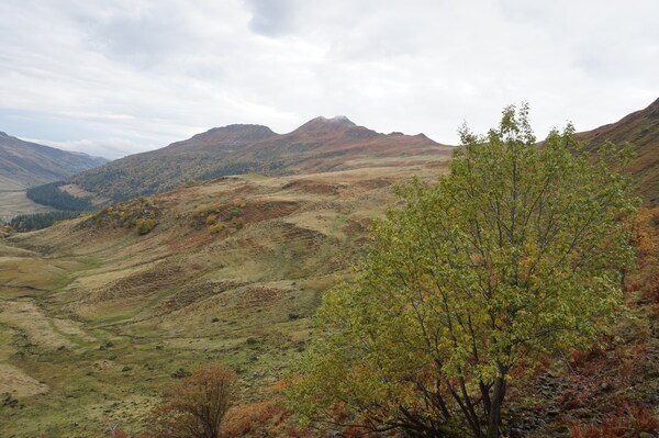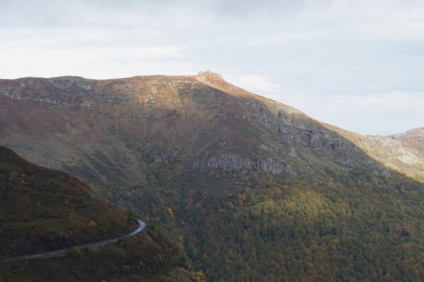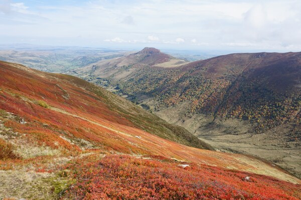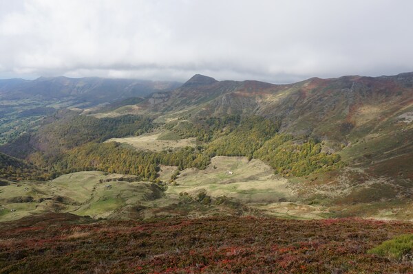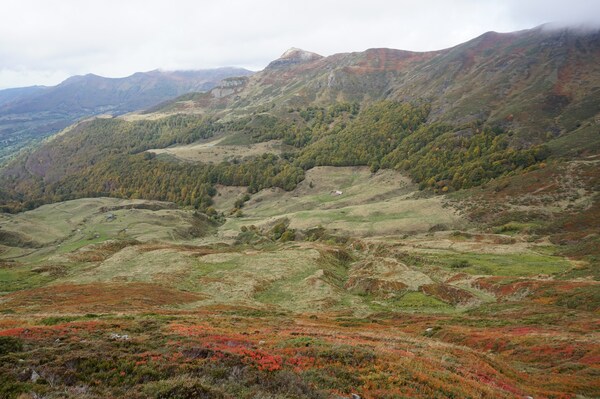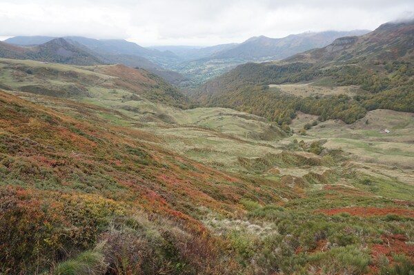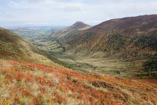 La vallée de l'Impradine. En haut, le Puy de Peyre Arse a la tête dans les
