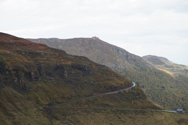 virage en épingle. Un chemin part du virage, pour rejoindre le Puy de Peyre