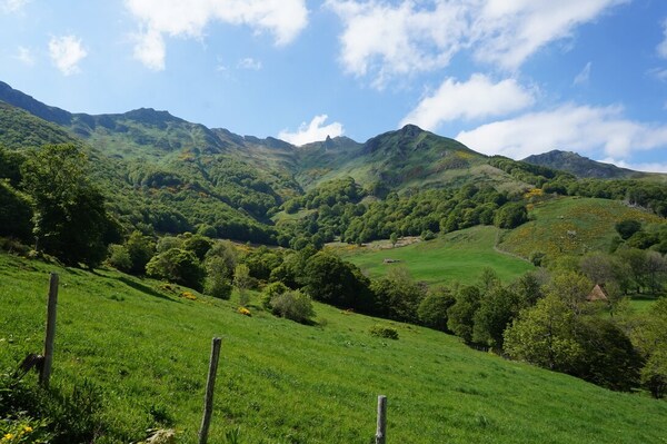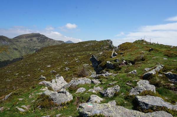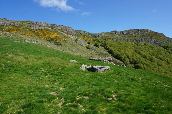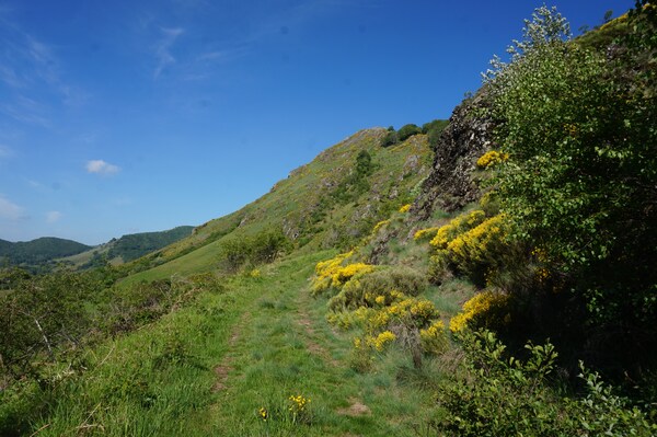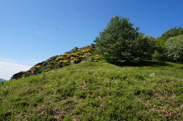 loin, le flanc est du Puy Chavaroche, dont le sommet n'est pas visible.