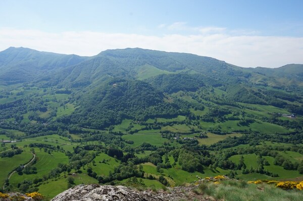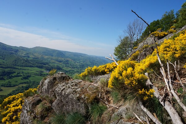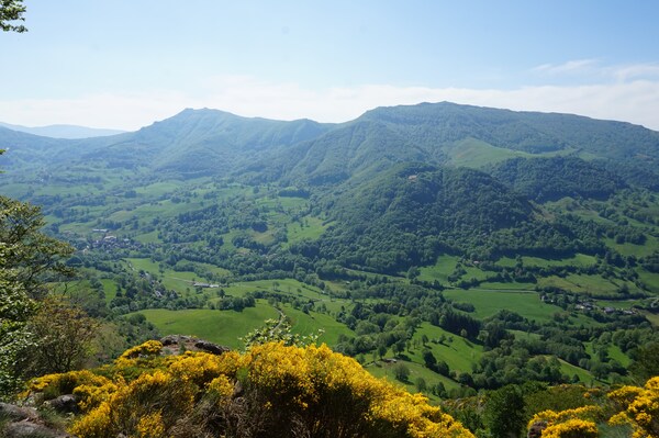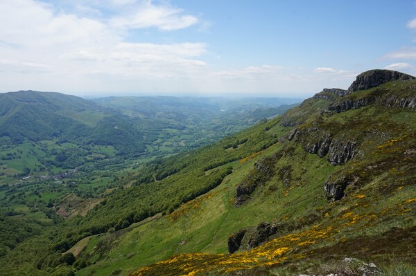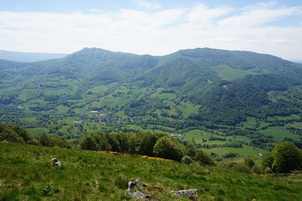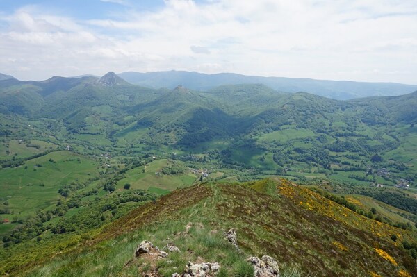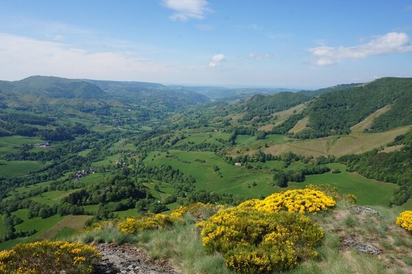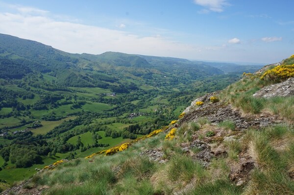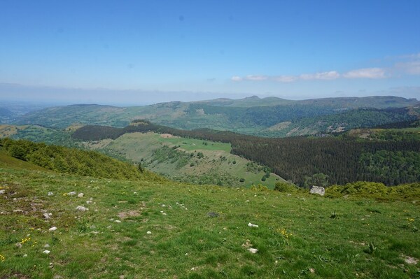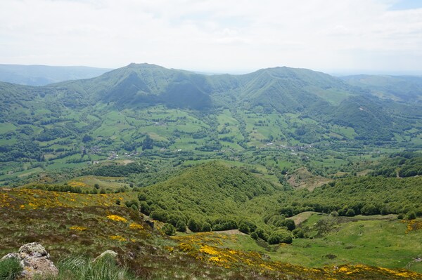 La vue vers le sud-ouest : la vallée de la Jordanne, avec au loin au