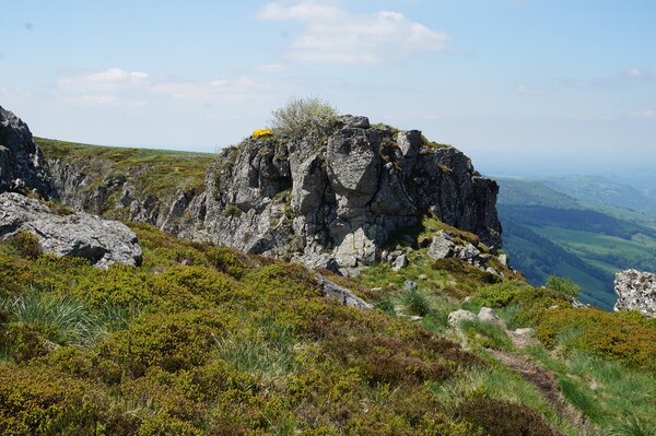 Sous le Puy Griou, j'aperçois les Roches Folles pour la première fois de la