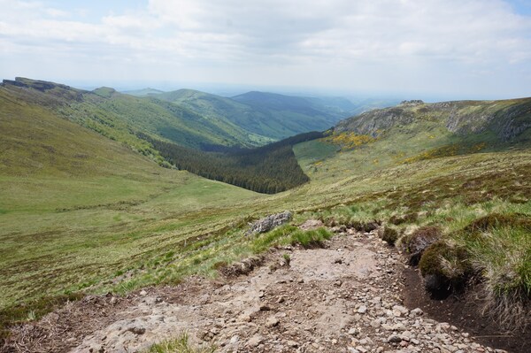 Je laisse derrière moi le Puy Chavaroche et entame ma descente vers le Col de