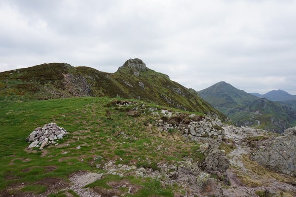 Derrière moi en altitude, la Roche Noire et le Petit Puy Mary, le Col de