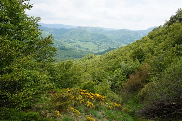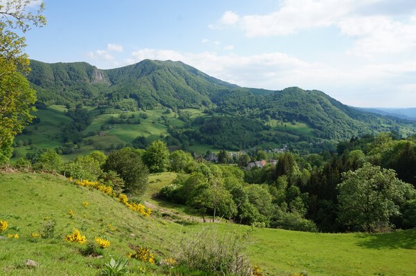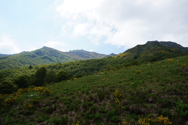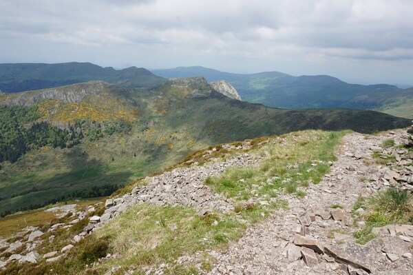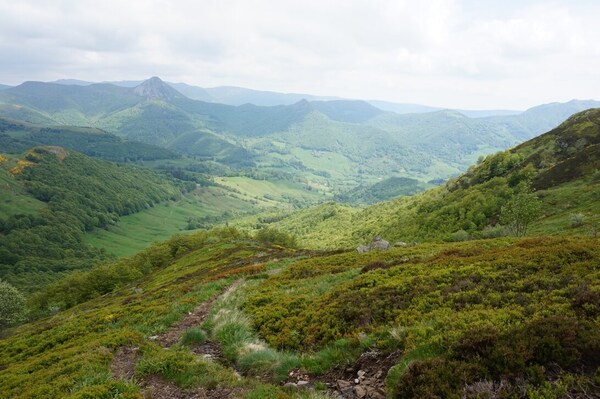 De temps en temps, une trouée offre un point de vue. Ici sur le Puy Griou et le