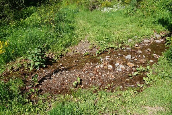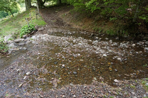 Le chemin traverse (ou est traversé par ?) de nombreux cours d'eau.