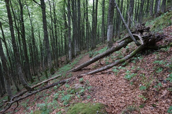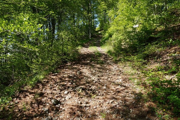Ici, la descente reste pentue, mais le chemin est plus sûr.