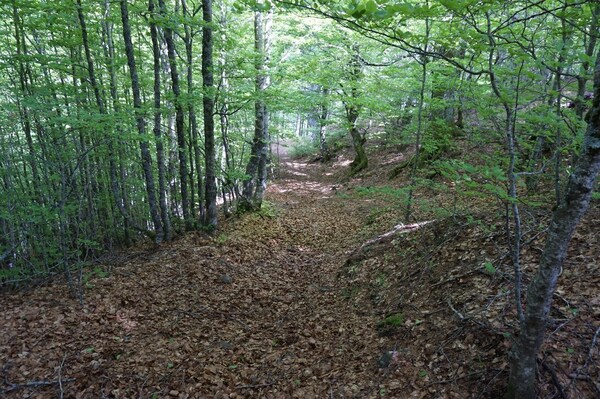 Je retourne dans la forêt pour rejoindre Cabrespine. Et ça monte.