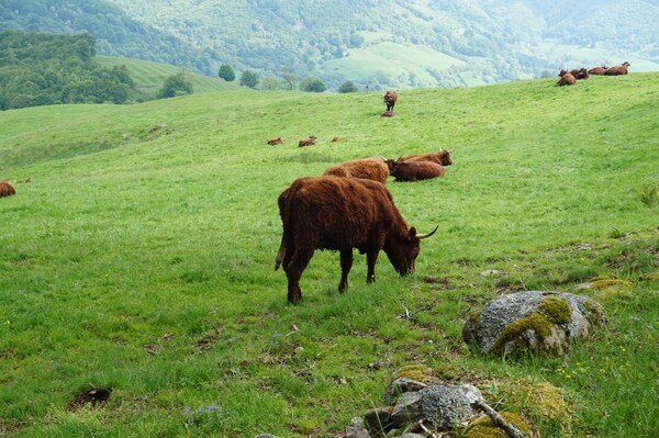 Surprise ! Des vaches paissent au pied des Roches Folles. Ne risquent-elles
