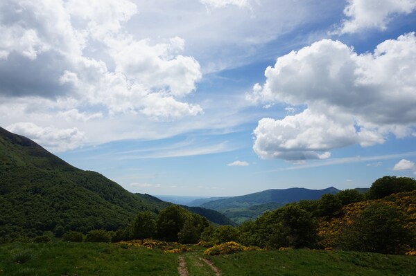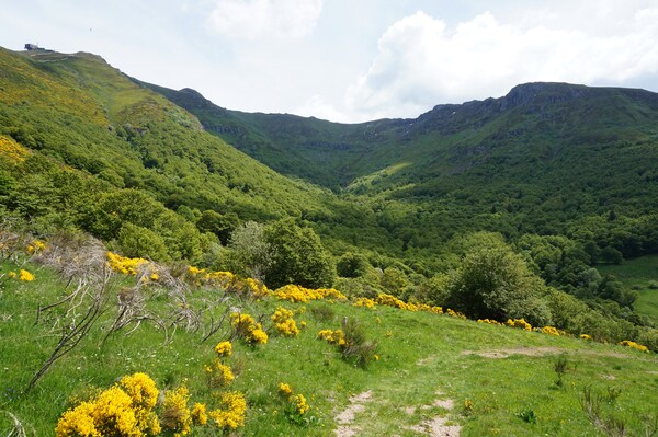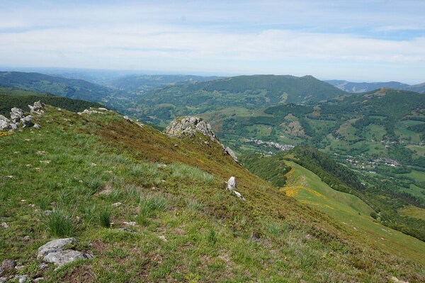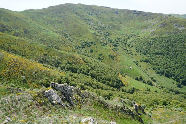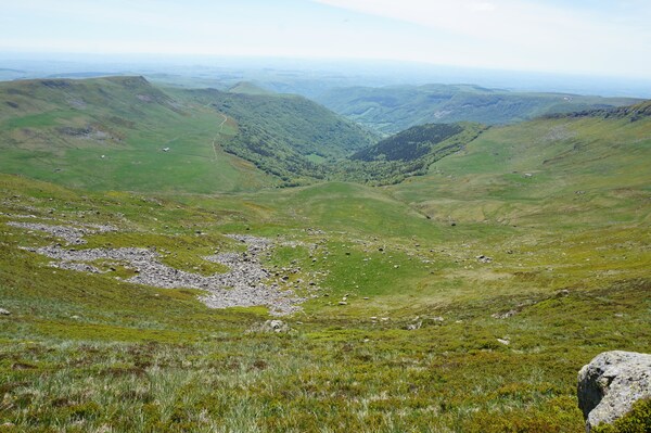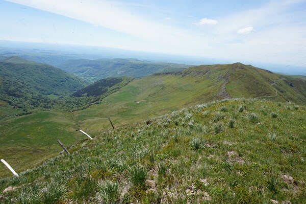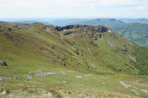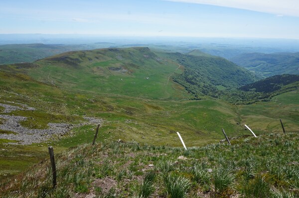 Derrière la ligne de crête conduisant du Puy Griou au Col de Cabre (et donc au