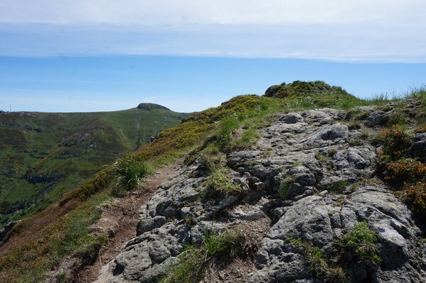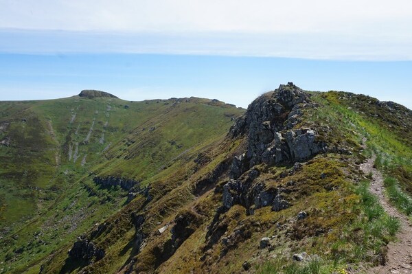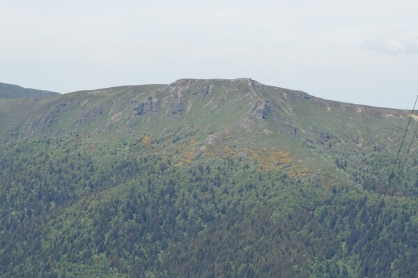 plus à gauche est le Puy de l'Usclade. Au-dessus, en gris, la crête du Puy