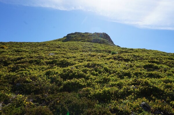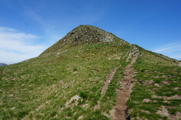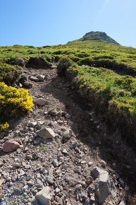 Gros plan sur le Puy de la Cède, avec le Col de la Pourtoune à gauche.