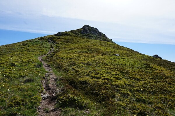 Autre vue de la descente depuis le Pas des Alpins, avec le Puy du Rocher en