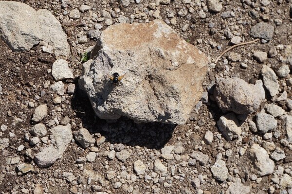 On la voit ici, en bas légèrement à droite, entre une pierre grise et une pierre