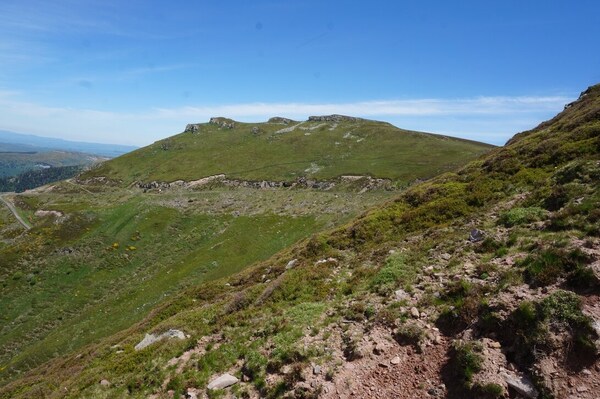 Au loin, au centre, le Puy de la Cède ; plus à droite, le flanc nord-ouest