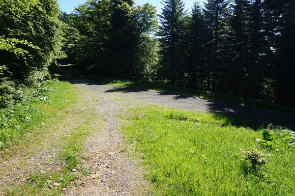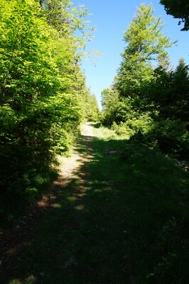 Arrivé au bout du sentier, celui-ci croise un chemin un peu plus large, qu'il