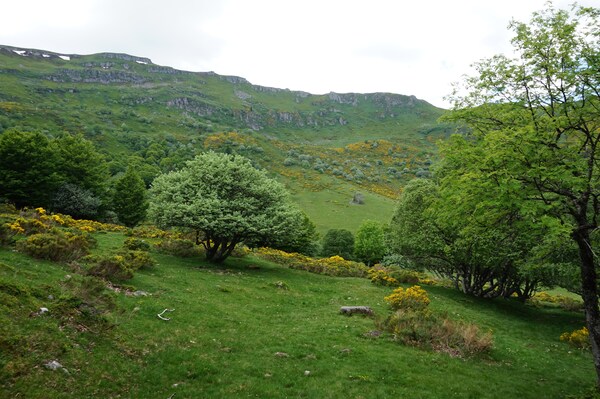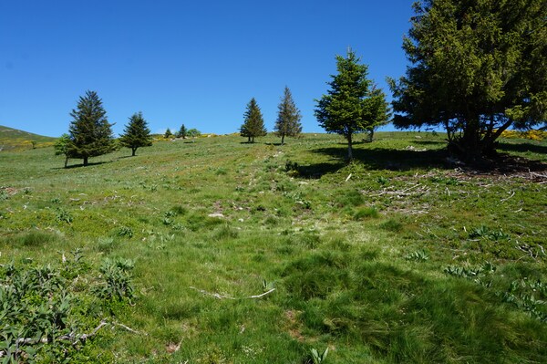 niveau de l'arbre esseulé, et monter vers les ruines des burons de Chameirol.