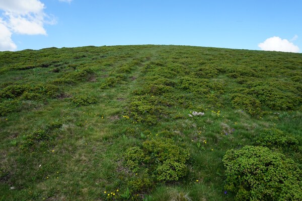 Me voici en zone d'estive sur le Rocher de la Sagne du Porc. Les traces semblent
