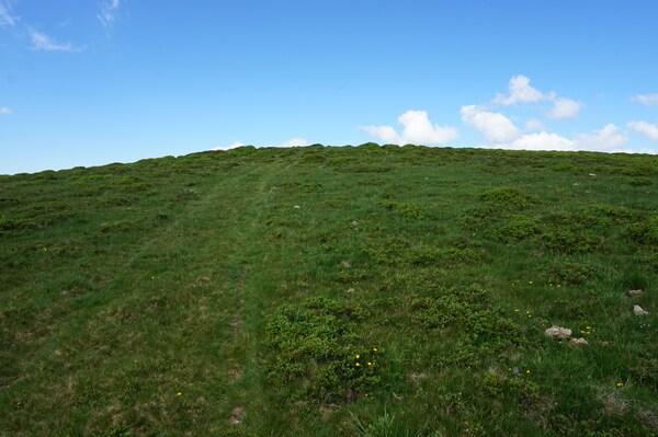 montée d'Albepierre au Col de Prat de Bouc. Le chemin monte rapidement vers ce