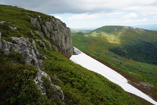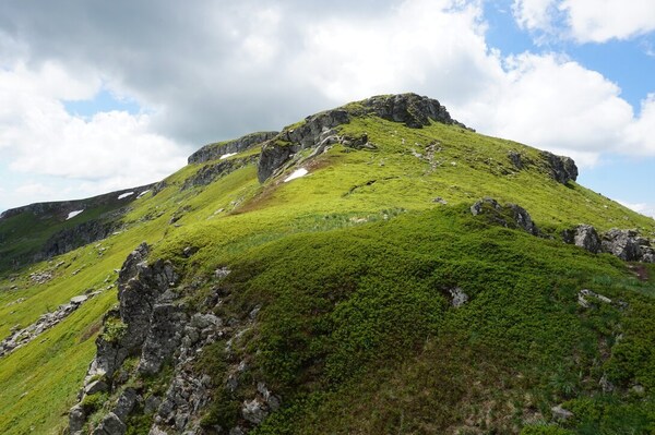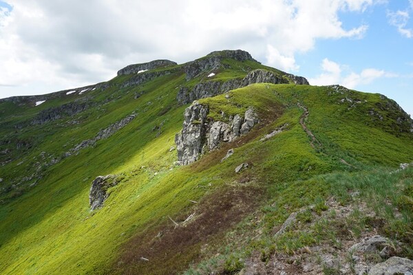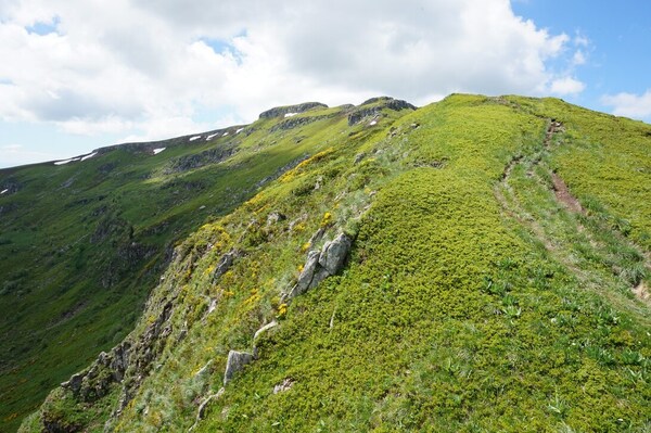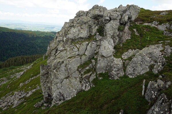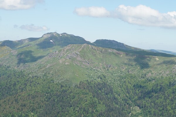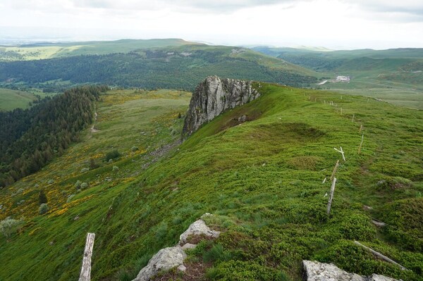 Vue de la crête complète du Puy du Rocher, dont les différentes saillies donnent