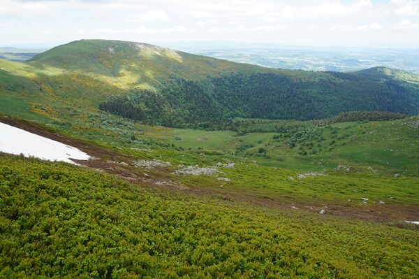De l'autre côté, j'ai vue sur le Puy de Molède. À droite du Puy de Molède, plus