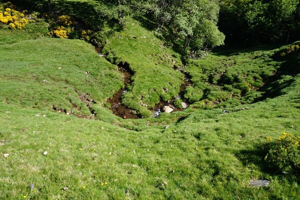 Sorti du cirque en franchissant un autre ruisseau, le chemin descend pour