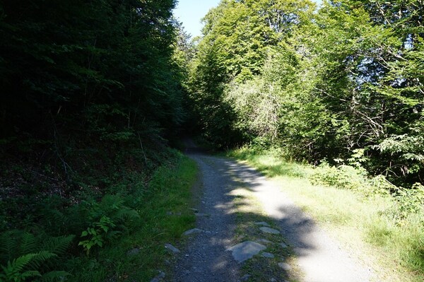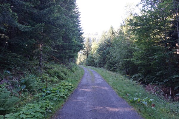 Le sentier de grande randonnée coupe plusieurs fois les larges lacets de la