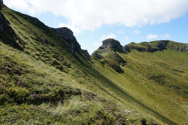 La brèche, et sur la droite, le chemin que je cherche à rejoindre.