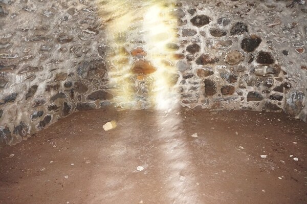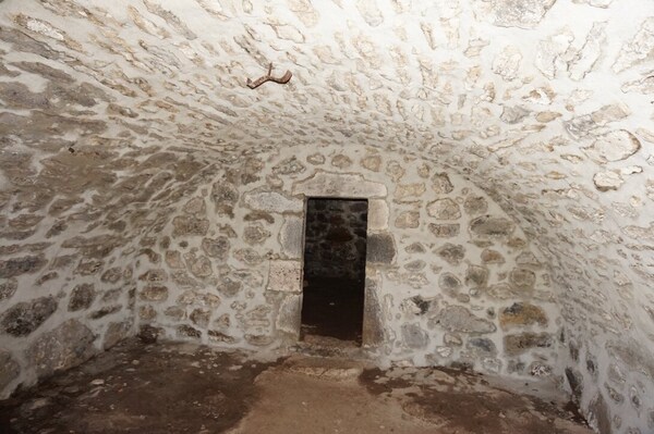 L'intérieur du buron est spartiate : un âtre tout simple...