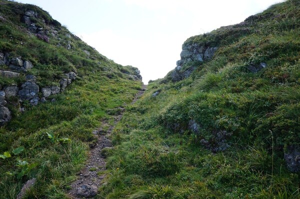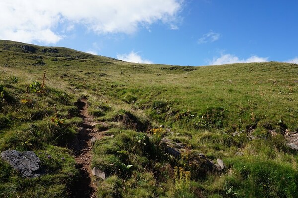 Enfin, au bout de la montée, se profile une zone d'estives. Puisque le portail