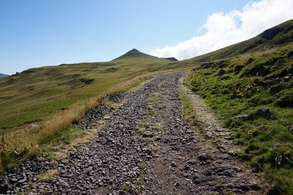 Au bout d'un virage, le Puy Violent apparaît, encore bien loin.
