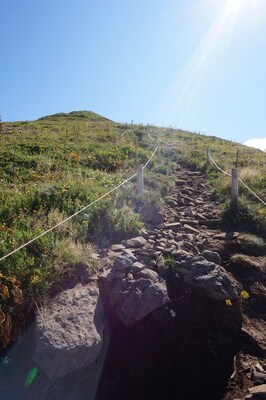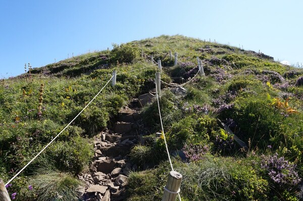 La pente est forte, mais courte, et le sommet est rapidement en vue.