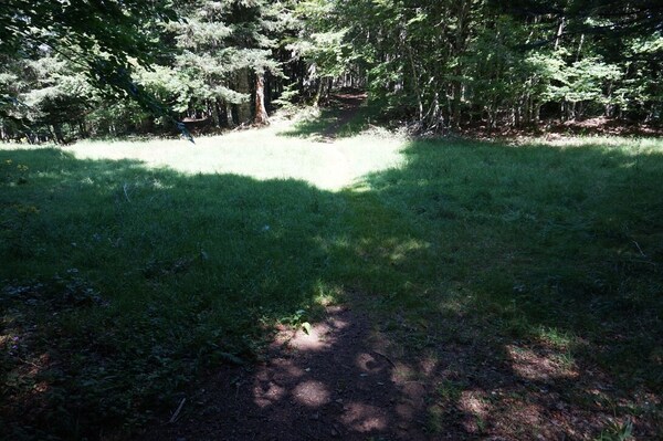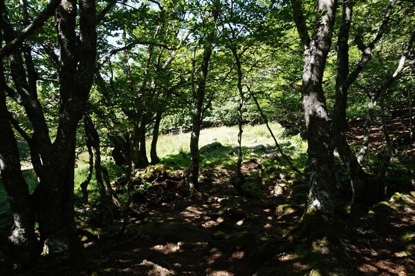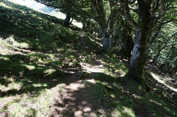 Le sentier traverse une petite clairière baignée par le soleil...