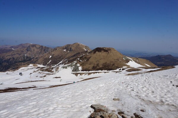 En contrebas, au nord, la station de sports d'hiver de Chastreix-Sancy (ainsi