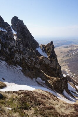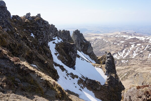 Gros plan sur les Aiguilles du Diable et le sommet du Puy de Sancy.