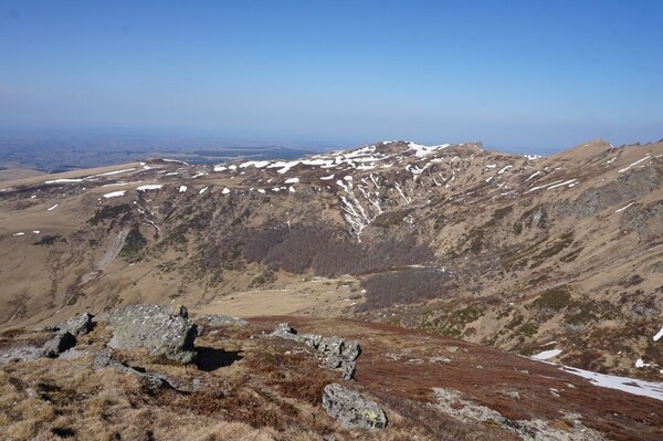 contrebas du Puy Gros, et le Puy de Paillaret au loin.