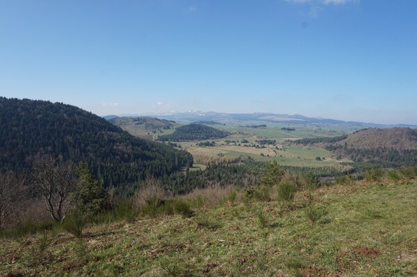 Vue vers le sud : les Monts-Dore au loin. Et bien sûr, tout comme depuis le