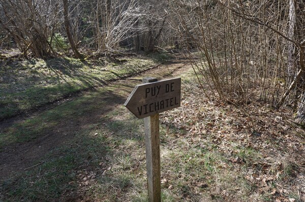 du Puy de Vichatel) sur la droite, au niveau d'un panneau d'information pour