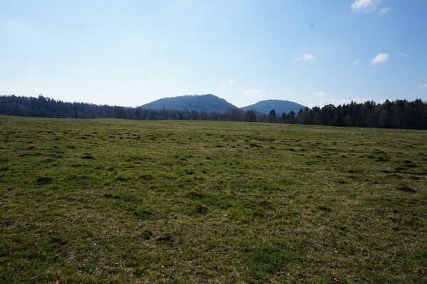 Devant moi, le Puy de la Vache. À gauche au loin, le petit relief plat est le