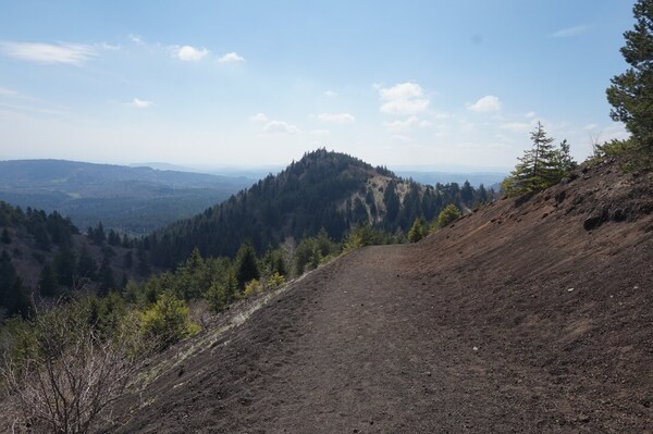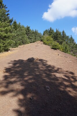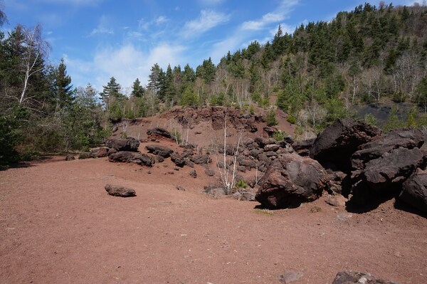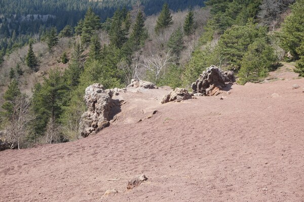 Par endroits, au sol, des bombes volcaniques provenant de l'éruption de l'un ou
