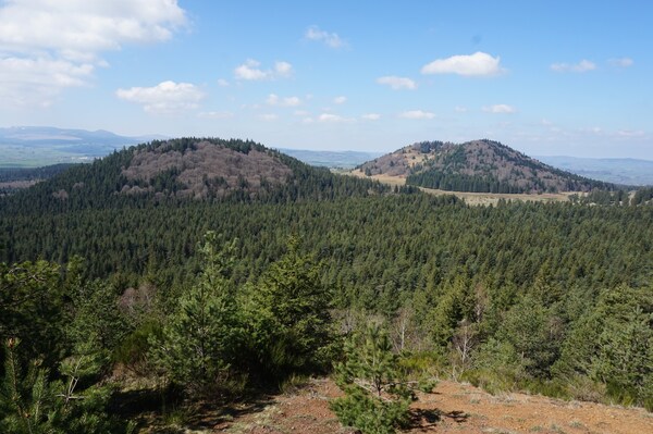 le Puy de la Toupe sur le bord gauche de la photo, et à droite le Puy de