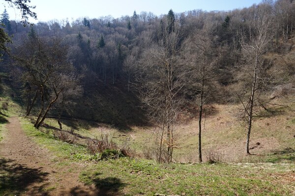 La descente continue, en zone boisée et par un chemin plus étroit.