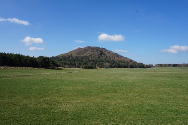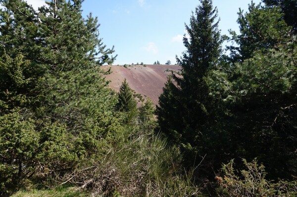 Au bord de l'ancien lac, le Puy de la Toupe.
