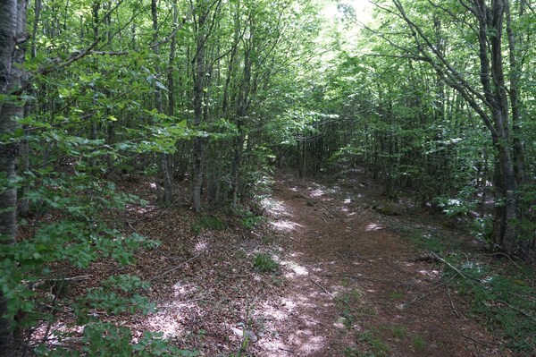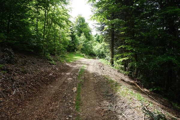 Rapidement, j'approche de la clairière où le chemin rejoint la piste forestière.