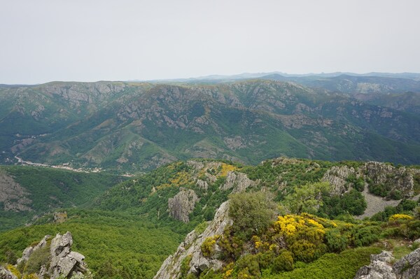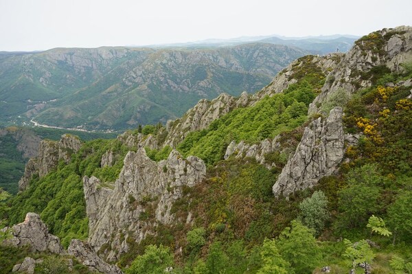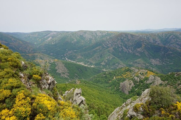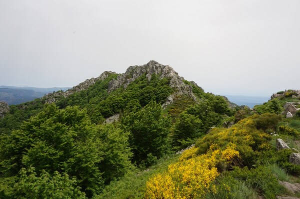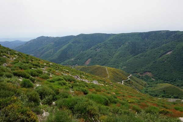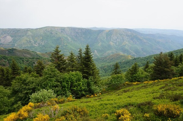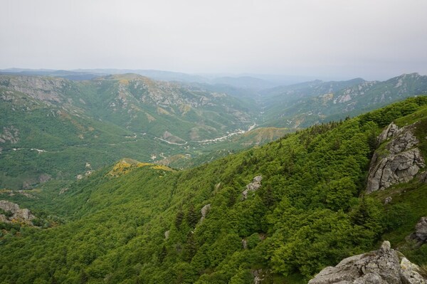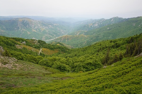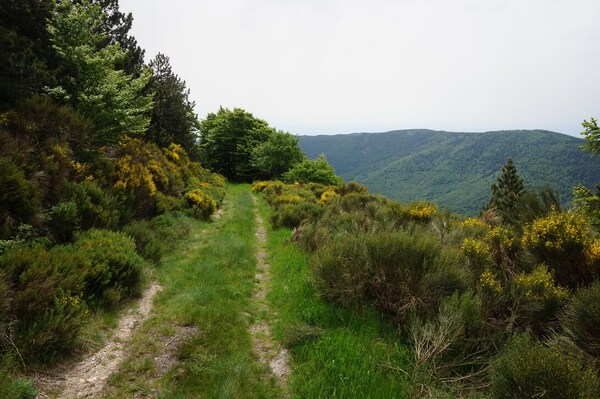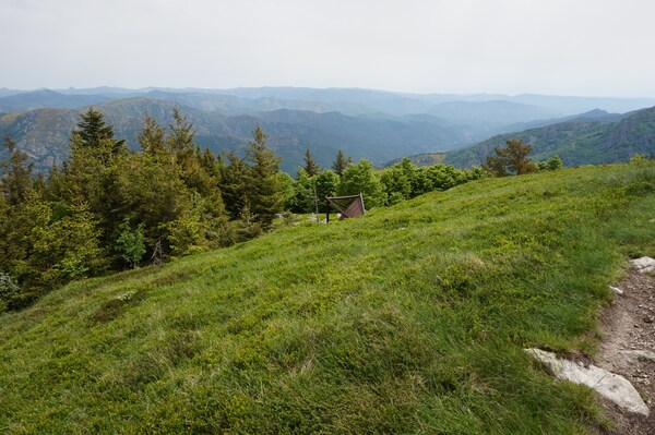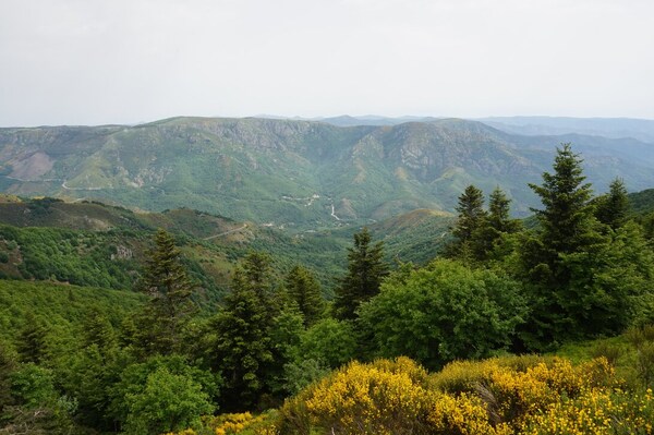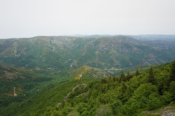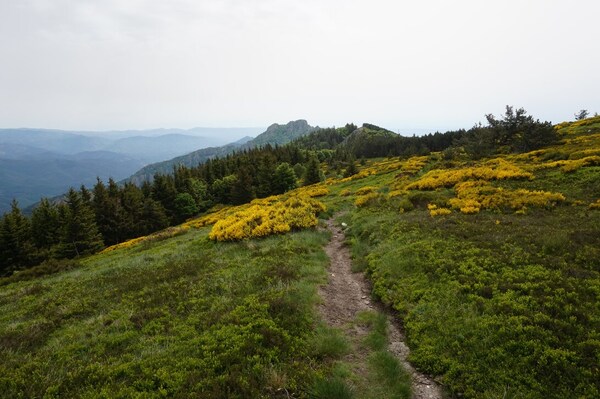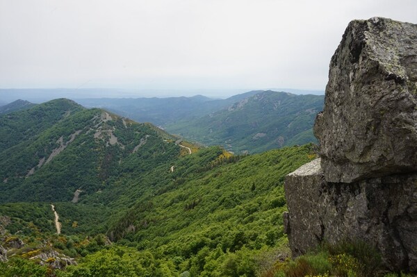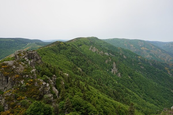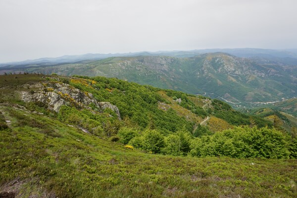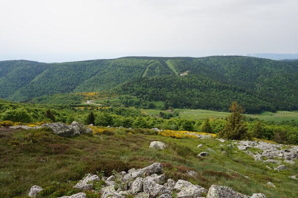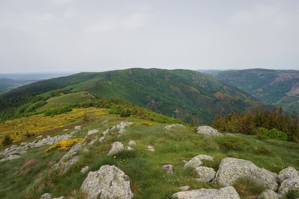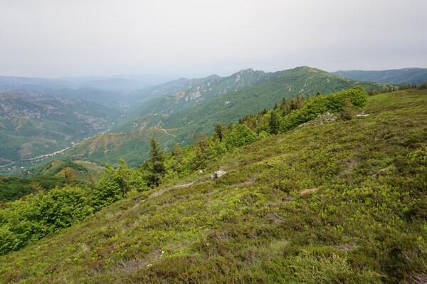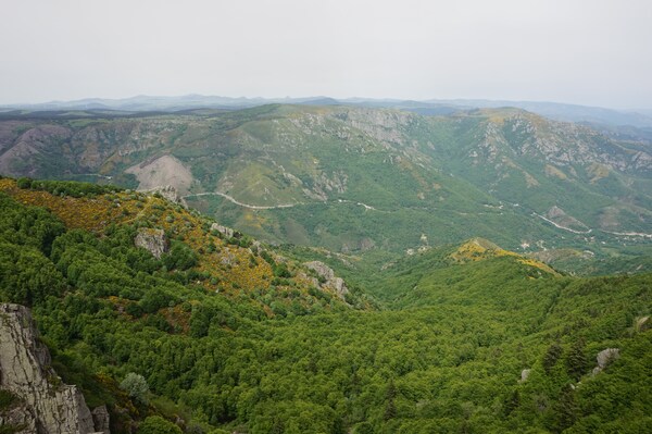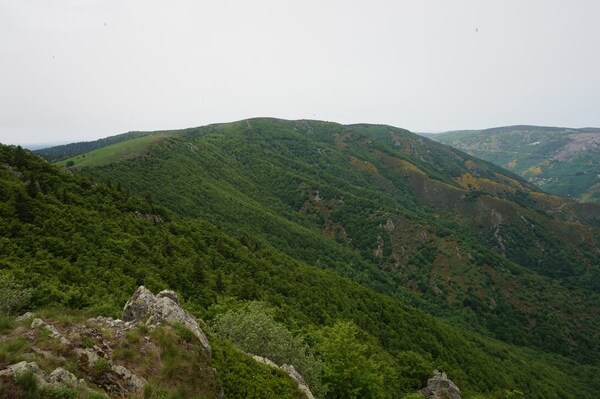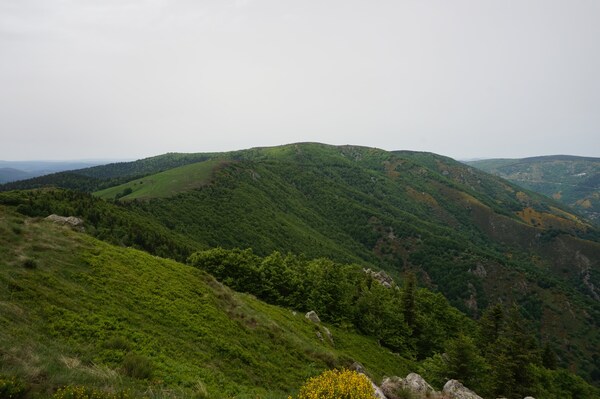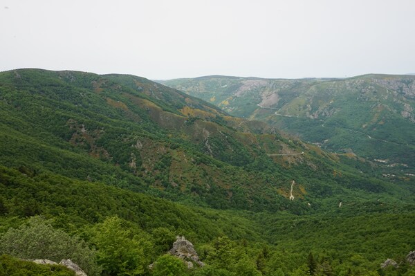 Une fois le sommet passé, voici la haute vallée de l'Ardèche. Hélas, la vue ne