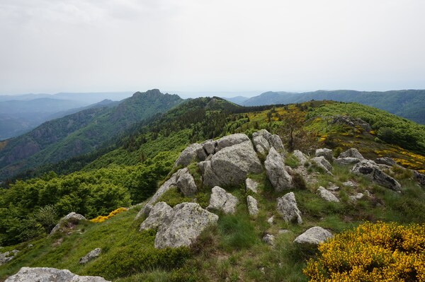 le Suc de Bauzon, et derrière encore, le Mont Mézenc et le Gerbier de Jonc