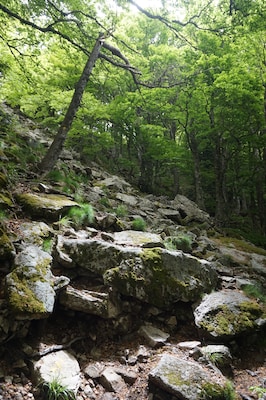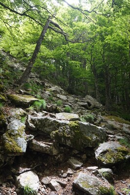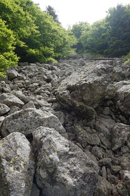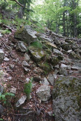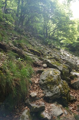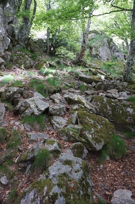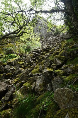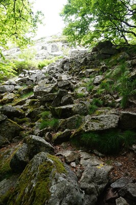 morceaux de rocher partout. Ici l'une des zones les moins pénibles à monter, et