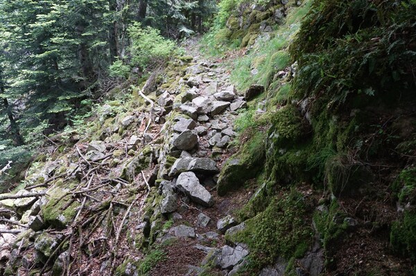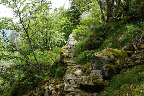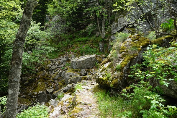 Ici aussi, le chemin est très rocailleux.