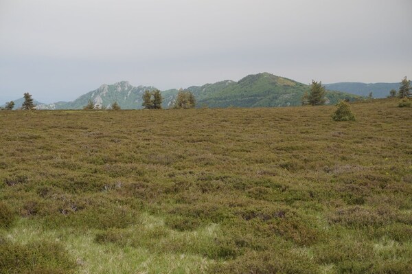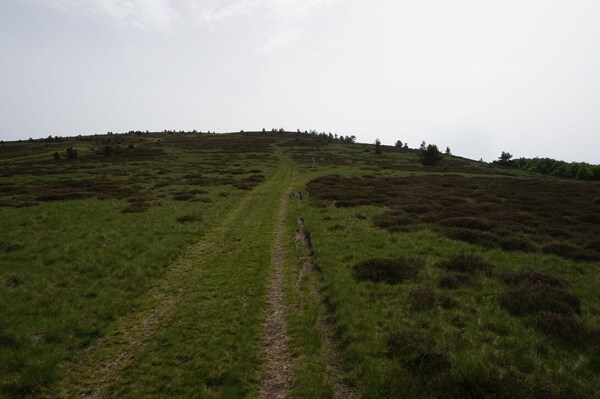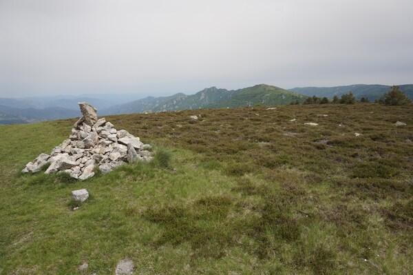 Sur la crête du Tanargue, au centre, le Sommet de Méjean, à gauche, le Mont