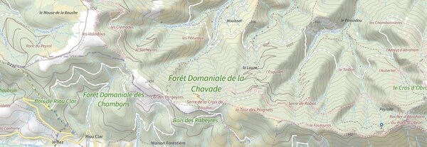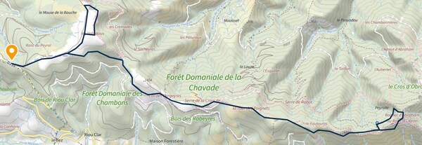 La piste part sur la droite afin de contourner le Rocher des Taillades, mais je