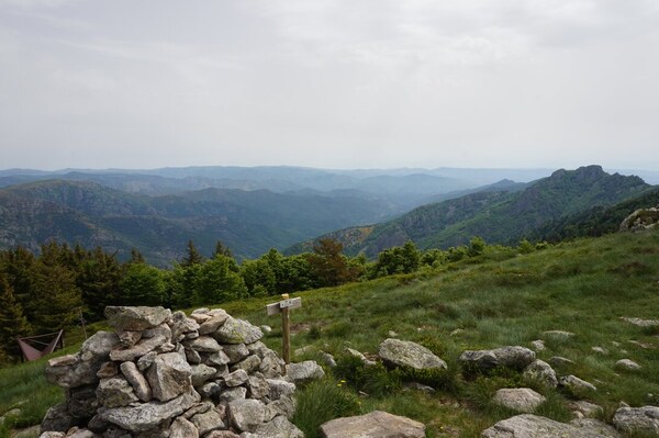 découverte. Face à moi, la crête du Tanargue.